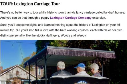 Since 1985, the Lexington Carriage Company has provided horse-drawn historical tours--slowed to the pace and rhythm of hoofbeats--offering an intriguing way to explore the history-rich streets of Lexington, Virginia including places of interest dating from as far back as the 1700’s.